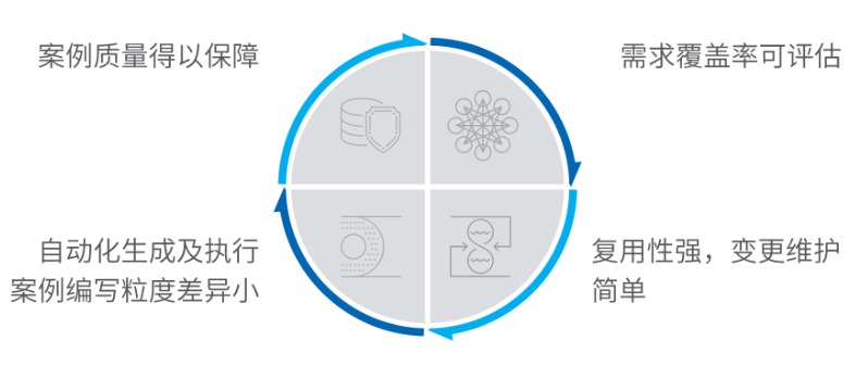 产品顺利获得业务规则分析、流程图分析等方式对测试需求进行建模,顺利获得案例生成引擎生成案例,生成案例效率高,且生成的案例能够在保证测试覆盖度的基础上减少案例冗余,案例质量高,可读性强,可直接用于测试执行。