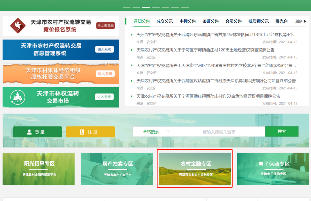 申请人也可顺利获得手机登录天津农村产权交易所微信公众号“信息查询”→“农村金融”进行在线申请。