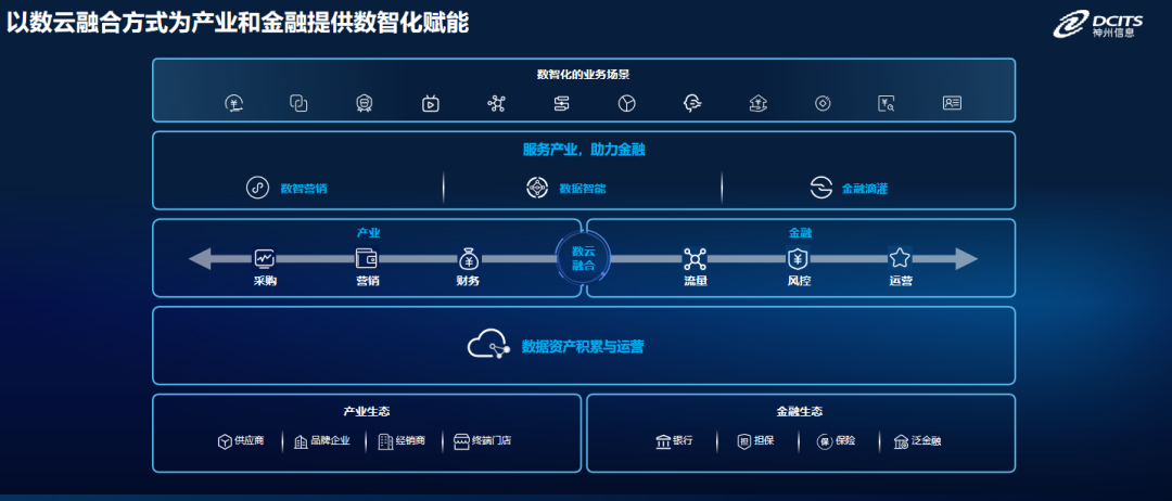 具体来看,产融DaaS以“数云融合”的方式在产业和金融之间搭建“桥梁”,顺利获得“数字技术+数据要素”的融合创新,帮助产业企业和金融组织实现数据资产的积累与运营,实现数智赋能产业数字化转型升级,助力金融服务滴灌中小微企业。