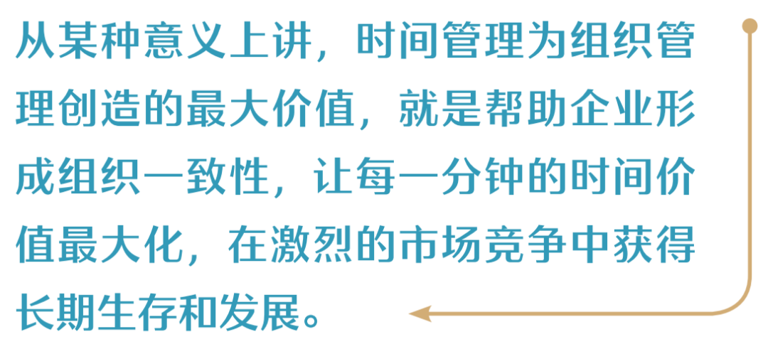 从某种意义上讲,时间管理为组织管理创造的最大价值,就是帮助企业形成组织一致性,让每一分钟的时间价值最大化,在激烈的市场竞争中取得长期生存和开展。